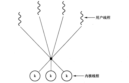 多对一模型将许多用户级线程映射到一个内核线程,线程管理是由线程库在用户空间进行的,因此效率比较高。但是如果一个线程执行阻塞了系统调用,那么整个进程会阻塞。而且,任何时候只有一个线程能够访问内核,多个线程不能并行运行在多处理器上。