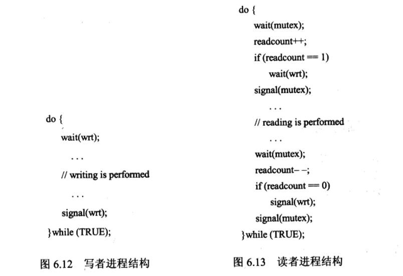 信号量mutex和wrt初始化为1;readcount初始化为0.信号量wrt供写者作为互斥信号量;信号量mutex用于确保在更新变量readcount时的互斥。变量readcount用来跟踪有多少进程正在读对象。